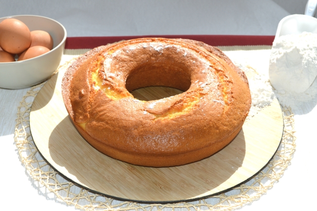 Handmade, Traditional and Natural Cake. Only Eggs, Sugar and Butter, with layer of Visciola Jam on top.